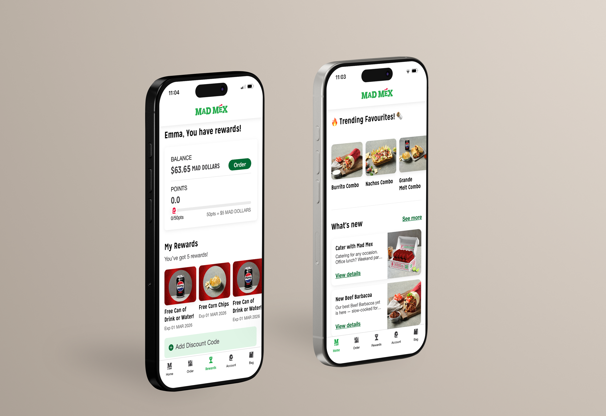 The creation of the Mad Mex app was a strategic digital transformation project delivered in close collaboration with TASK (development partner) and Senior Graphic Designer, ensuring a seamless balance between technical functionality and elevated brand design.